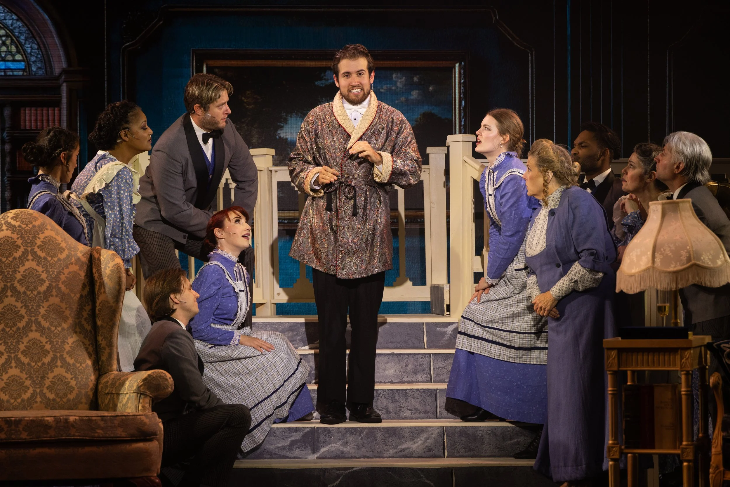 “The ensemble in this My Fair Lady is more than just an ensemble; they are the heart and soul of the show, moving the sets in character whether as a street sweeper or one of Higgins’ servants. Jennifer Jackson, Ellen Sisley, Jennifer Hope, Alaina Bozarth, Rachel Knowles, Elias Husgafvel, Nazmokeem Harvey, Kristofer Holz and Terry Farley all do remarkable work. I love how each ensemble member is a full-fledged character or busybody, not just a boring B.O.S. (Body On Stage).” -Peter Nason, Broadway World